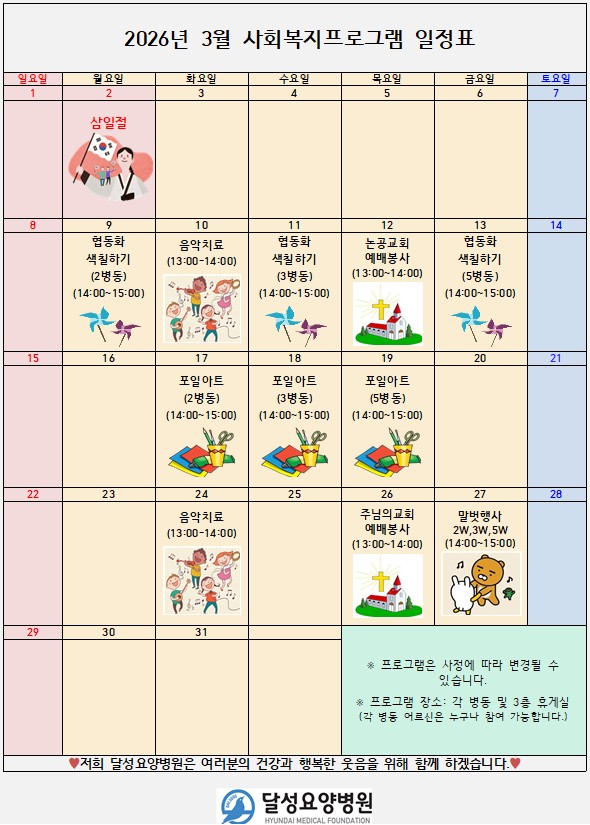 2026년 3월 사회복지프로그램 일정표
