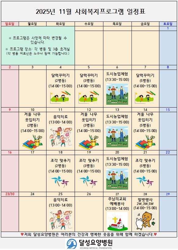 2025년 11월 사회복지프로그램 일정표